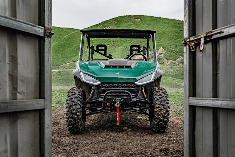 The 6-ply OBOR tires enhance durability and comfort. Optional 14” aluminum wheels and 30” tires offer cooler styling and 350mm ground clearance.